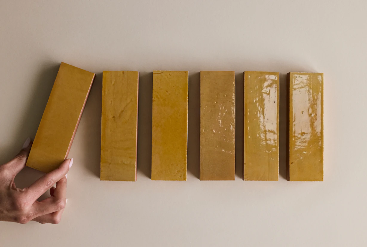 For interior designers who value craft, nuance, and authenticity, seeing Origins in person is essential. Each tile carries a depth and vibrancy that digital images cannot fully convey. Request sample tiles to experience the texture, gloss, and tonal variation firsthand — and imagine how Origins can transform your next project into a space that celebrates materiality and human touch.