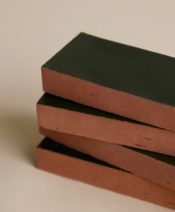 Once dried, each tile is coated in a colored liquid enamel by hand. This step creates unique tonal depth, allowing the clay to interact with light in subtle, unpredictable ways. Variations in shade and texture become a feature, not a flaw, reinforcing the organic, “lived-in” aesthetic that defines Origins.