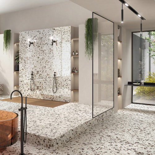 Discover Agglo — our signature terrazzo collection, handmade in Italy with the finest materials. Each tile is resin-based and crafted with hand-selected marble chips, combining timeless beauty with exceptional durability.