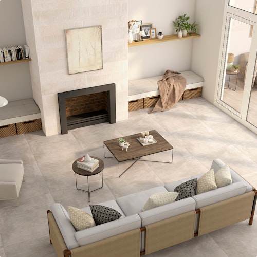 Essence captures the raw beauty of aged cement with a smooth, refined finish. Its understated texture and neutral tones bring effortless sophistication to contemporary interiors. A versatile porcelain collection that blends industrial charm with modern simplicity.