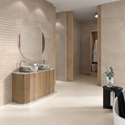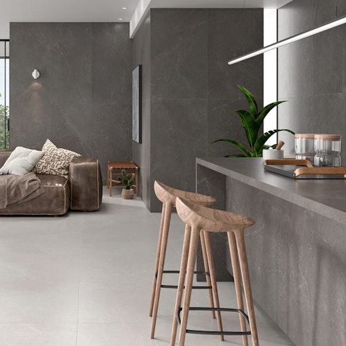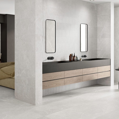 Story captures the quiet drama of natural stone with intricate veining and a soft palette of neutral shades. With textured finishes and dimensional depth, this porcelain collection brings organic movement and timeless elegance to both walls and floors.